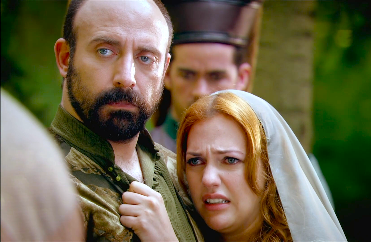Вспоминаем не только сериал, но и историю Османской империи. Вы видите кадр из той серии, в которой девушка Садыка напала на Султана с клинком. Если Вы помните, Хюррем в то же время потеряла когда-то любимого Луку. И тому был виной Ибрагим.