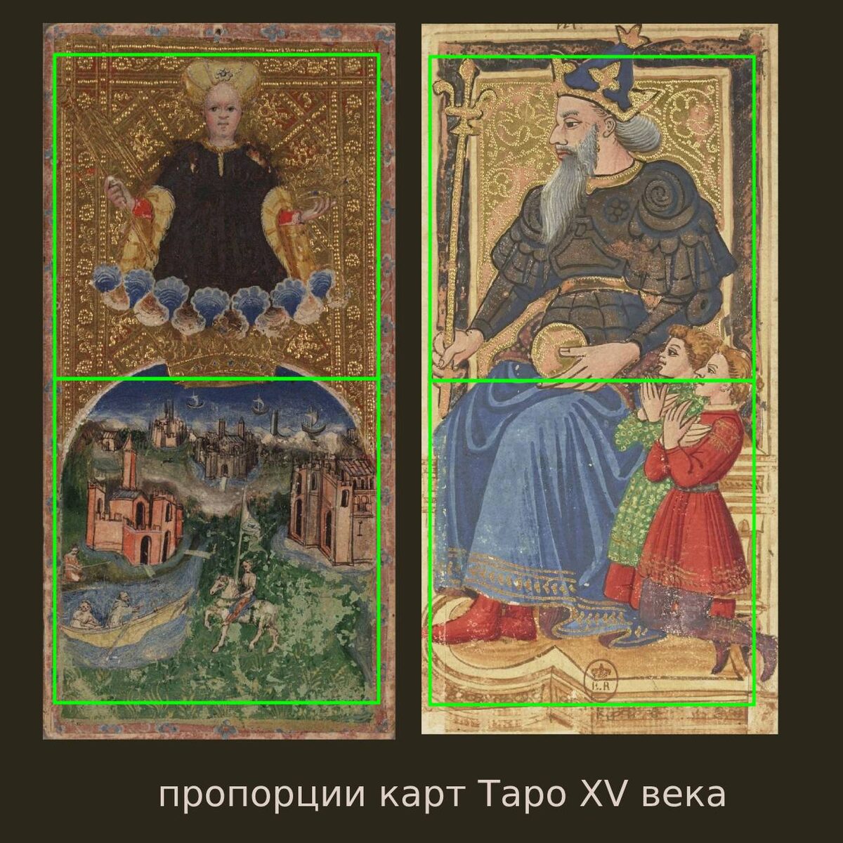 Особенность пропорций первый карт Таро, созданных в северной Италии, в XV веке.