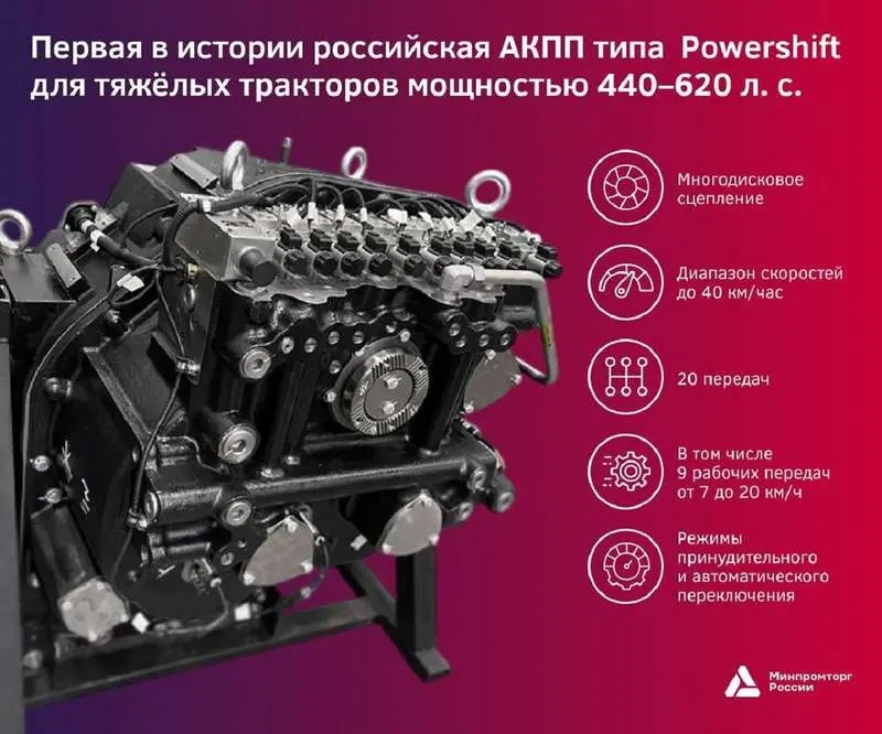 Первая в РФ АКП RSM Powershift для тракторов отправлена на стендовые испытания, проинформировал Минпромторг РФ. Над созданием автомата для тяжелых тракторов работал «Ростсельмаш». Агрегат предназначен для работы с двигателями мощностью 440-620 л. с., он имеет 20 передач, многодисковое сцепление и режимы принудительного и автоматического переключения, а также он может работать в диапазоне скоростей до 40 км/ч. В текущем году должны пройти полевые испытания новой АКП в составе тракторов 3000-й серии – «Ростсельмаш 3002 4WD». В ведомстве пояснили, что RSM Powershift отличают высокие показатели по производительности и передаче мощности, что обеспечивает переключение передач под нагрузкой без разрыва потока тяги. Дарим Lada подписчикам! Заполни анкету и выиграй: https://vk.cc/cHhDhi