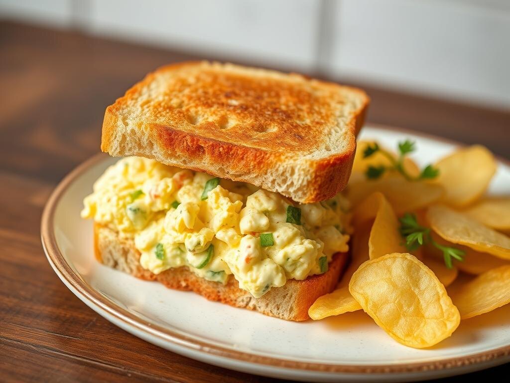 - Собрать сэндвичи: Разложите ломтики хлеба. На одну половину каждого ломтика равномерно выложите яичный салат. По желанию добавьте сверху салатные листья или другие овощи. Накройте второй половиной хлеба.