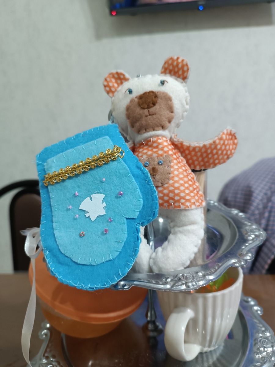 Пока домочадцы приводят себя в порядок, колдую с завтраком. Сделала фото Вериных поделок (снова работы из художественной школы). Вот, думаю, выложу оригинальную позитивную новогоднюю картинку на канале, а получается вид озадаченного мишки с варежкой -прихваткой. Это знак! Так и день весь прошёл - в хлопотах и заботах).