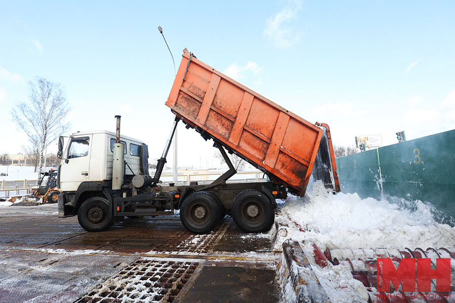 Первые в сезоне самосвалы со снегом принял снегосплавный пункт Минска