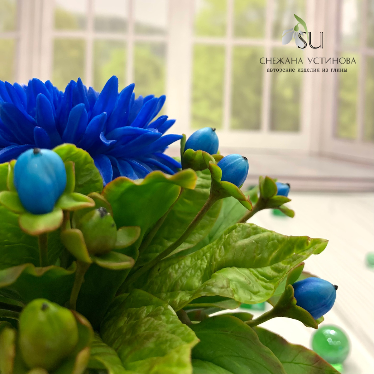 Когда форма вазы была определена, началась вторая стадия – выбор главного цветка. Мне хотелось чего-то яркого, чтобы разбавить белоснежную простоту керамики. Так моё сердце унесло на просторы вдохновения и привело к решению слепить синюю хризантему.