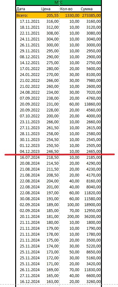 После этого, разумеется, ее акции пошли вверх, и не факт, что еще когда-то будут стоить так дешево, как осенью 2024 года. Но если вдруг... то мне есть, куда дальше снижать среднюю цену.