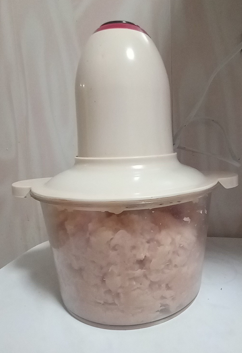 Почему мини? Потому что сложно планировать большую заготовку полуфабрикатов, когда рядом трехмесячный младенец. Что успела, то и сделала. Итак, имелось у меня 1200 гр свинины и 800 гр куриной грудки. Фарш я делаю сама, используя измельчитель. В готовом фарше: Свинина - 1200 гр; Куриное филе 800 гр; Лук - 4 шт. Средние; Соль, перец чёрный молотый и сушеная зелень - по вкусу. Основная заготовка из-за которой и начался процесс - пельмени. Муж и старшая дочь съедают за раз 30 и 25 шт соответственно. Поэтому почти каждая заготовка с фаршем начинается с пельменей. Объем пельменей зависит от времени сна младшей дочки. Сегодня это 4 круга. Для теста: Мука пшеничная – 400 г; Вода (холодная) – 240 мл; Яйцо – 1 шт.; Соль – 1 ч.л.; Масло растительное – 2 ст.л.; Таких замесов я делала 2 с помощью хлебопечки. Раскатываю тесто на слегка припыленной мукой поверхности в тонкий пласт (толщина примерно 2-3 мм). Использую пельменницу, обильно посыпанную мукой. Обычно вместе с пельменями я го