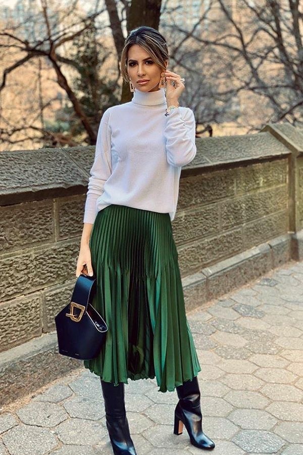 - Юбка: Зеленая юбка сочетается со множеством вариантов верха, как по стилистике, так и по цвету.
