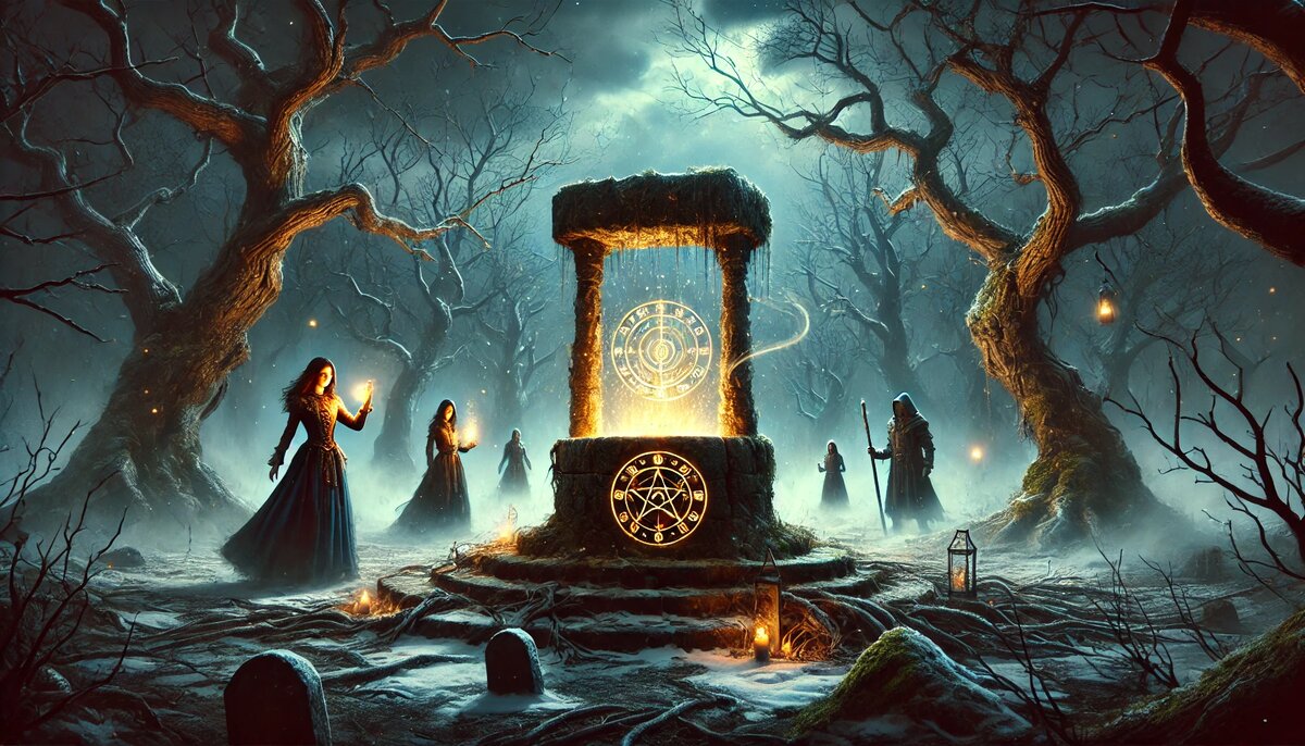 На следующее утро я проснулась с тяжёлым чувством: как будто что-то застряло между сознанием и сердцем. Серое небо, низкие облака — всё говорило о надвигающемся холоде. Ольга и Андрей, узнав, что я собираюсь пойти к старому колодцу, сразу же предложили идти со мной. — Туда одной нельзя, — твёрдо сказал Андрей, проверяя кинжал за поясом. — Кто знает, что там творится. — А если там ничего? — попыталась успокоить нас Ольга, натягивая плащ. — Но даже если это так, лучше перестраховаться. Тропинка, ведущая за деревню, была почти заметена снегом. Лес вокруг казался слишком тихим. Даже ветки не хрустели под ногами так, как обычно. Иногда я машинально касалась амулета на своей шее, и каждый раз он казался чуть теплее, словно оживал, когда мы приближались к цели. Наконец, мы дошли до колодца. Он стоял одиноко, обросший мхом и тёмной историей. Камни его были тёмными, как будто навсегда впитали в себя ночи прошлого. В воздухе витала странная тяжесть, словно само место не хотело, чтобы мы были зде