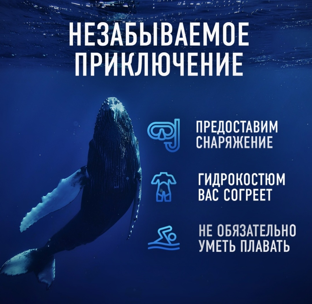 Плавание с китами — это уникальный и незабываемый опыт, но необходимо помнить о важности безопасности и уважении к этим величественным существам и их среде обитания. Вот несколько рекомендаций о том, как себя вести и на что обращать внимание, когда вы находитесь в воде вместе с китами: Подготовка до погружения Исследование и выбор компании: Перед тем как отправиться на плавание с китами, тщательно выберите компанию, предлагающую такие экскурсии. Убедитесь, что они придерживаются этических стандартов и практик охраны природы. Информация о китах: Узнайте о видах китов, с которыми вы собираетесь плавать. Знание их поведения и особенностей может помочь вам лучше понять, как действовать в воде. Соблюдение правил безопасности: Перед выходом на воду прослушайте инструкции гида и соблюдайте все указания. Это включает в себя информацию о том, как правильно вести себя в воде. Во время плавания Соблюдение дистанции: Держитесь на безопасном расстоянии от китов. Не пытайтесь приближаться, ухватить