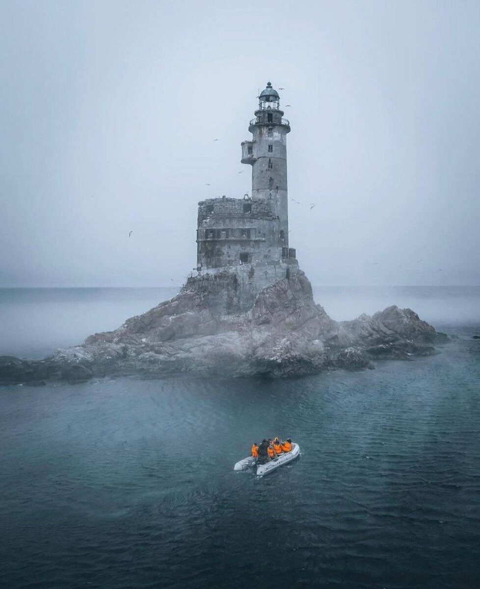 Там, среди скал и бурных морских волн стоял маяк Анива, построенный в далеком тысяча девятьсот тридцать девятого года. Попали мы туда на небольшой моторной лодке, с проводником по этим опасным местам, на вид мужичонка выглядел, как старый американский моряк, с длинной седой бородой. Было в нем, что – то приятное, но в тоже время и отталкивающее, но вот что? Ответа я найти пока не мог.