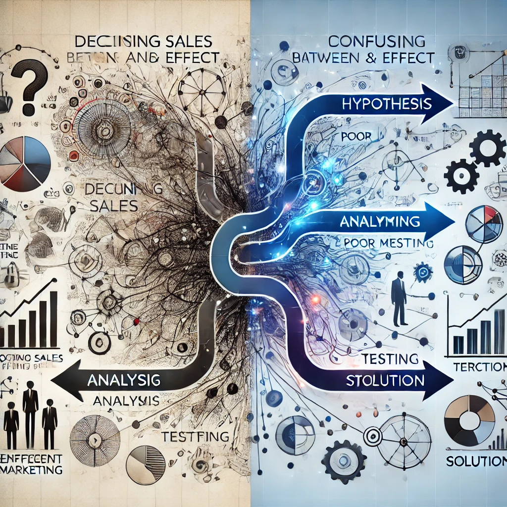 В бизнесе ключ к успешному решению проблем — это умение различать причину и следствие. Неправильная интерпретация этих понятий может привести к бесполезным тратам ресурсов и ухудшению ситуации. Эта статья поможет вам понять, как структурно подходить к анализу и принимать обоснованные решения. Правильное понимание причинно-следственных связей в бизнесе позволяет: Когда вы видите проблему, важно задать себе вопрос: это причина или следствие? Например: Проверьте, есть ли внешние переменные, которые могут влиять на ситуацию.