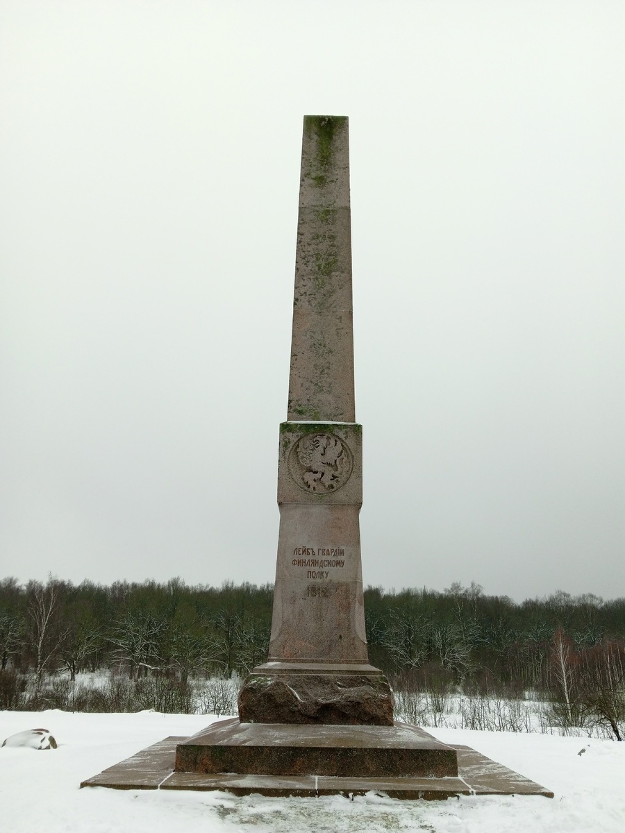 Памятник лейб-гвардии Финляндскому полку был установлен в 1912 году, в честь 100-летия Бородинского сражения. Автором проекта стал архитектор Былевский.