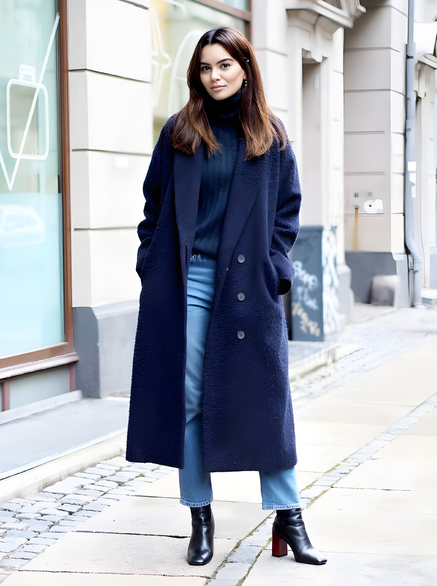 Главный принцип – многослойность. Но не та, от которой становишься похожей на капусту, а продуманная и элегантная. Например, на водолазку наденьте тонкий джемпер, а сверху – кардиган. Получается три слоя, но выглядит стильно и совсем не громоздко. А если добавить длинный шарф, повязанный свободным узлом, образ становится ещё интереснее.