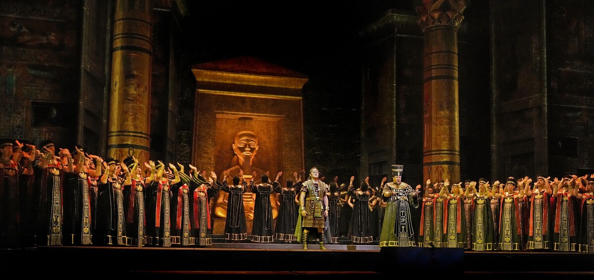 Никакие минимализмы здесь не пройдут, ведь нам внушили что «фараоны жили когда-то праздно, весело, богато» (отредактированный Пушкин). Если этого нет, (особенно на такой огромной сцене, как в Мет-опере), мы начинаем сомневаться, колебаться, беспокоиться и недоумевать. И банальное «сделайте нам красиво» так и просится из наших оперных сердец.