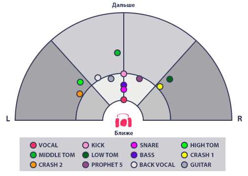 Привет. На самом деле, эти мои статьи не претендуют на полную инфу. Я просто стараюсь разобраться в деталях записи звука и работе на аудиоредакторе. И, возможно, это может пригодиться вам. Основной процесс в песнях при их записи состоит из трех вещей: 1. запись инструментов и вокала 2. сведение 3. мастеринг Когда новичок записывает свою песню, то у него инструменты звучат плохо - где-то проваливается звук, где-то они ближе, чем надо и наоборот дальше или - громче. Вокал режет слух. 1. Запись инструментов и вокала. Пока оставляю этот пункт (для других постов) и сразу перехожу ко второму. 2. Сведение. Важнейшей из задач в нем является создание объема и панорамирование. На верхней картинке изображена классическая для электронной и рок-музыки схема распределения инструментов и вокала по каналам и по удаленности-близости-верху-низу в некоем пространстве перед слушателем. Звук должен не бить в уши, а располагаться гармонично как бы перед слушателем в некоем пространственном помещении чут