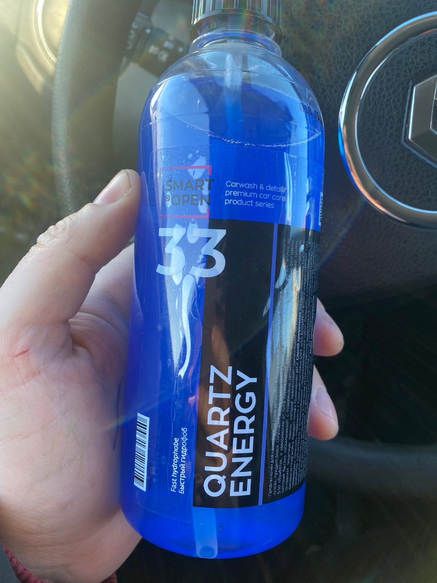 Купил на автомойке за 680р. результатом доволен! Присутствует хороший блеск. Продавец строго рекомендовал много не брызгать, чтобы не было жирных пятен. 1 пшик на 1 м2. На мокрую мытую машину. Набрызгали и выдержали минуту ( растирать не надо!) смыли водой под давлением ( движениями сверху вниз) , вытерли. кварцевое гидрофобное покрытие для формирования устойчивого гидрофобного, защитного слоя на поверхности кузова автомобиля. QUARTZ ENERGY 33. Содержащиеся в составе полифункциональные соединения оксида кремния обеспечивают длительную защиту и блеск ЛКП.
