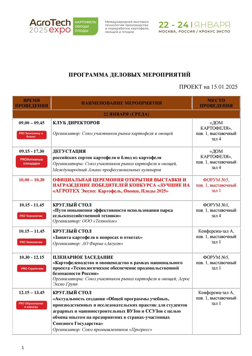 ДЕЛОВАЯ ПРОГРАММА «АГРОТЕХ Экспо: Картофель Овощи Плоды»