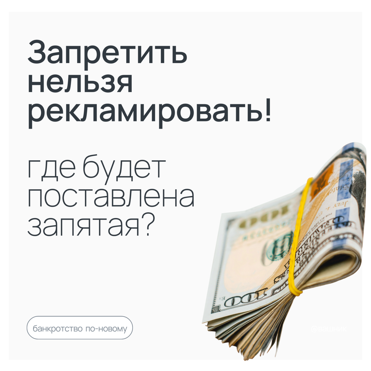 18.09.2024 г. депутатами был внесен новый законопроект, который предлагает следующие нововведения. Реклама услуг, связанных с банкротством граждан, в том числе снижением размера задолженности граждан по денежным обязательствам и по уплате обязательных платежей, не должна: