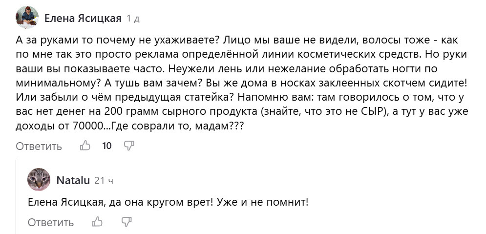 Однажды в комментариях меня попросили рассказать про косметику, которой я пользуюсь. 2 дня назад написала обо всем подробно. Про тушь, которая снимается чулочками и пр. В ответ получила комментарии о том, что я все вру и занимаюсь рекламой. Вот это поворот! В интернете только недавно начала получать около 70 000 руб. В первый месяц половина денег ушла на таблетки. Одна пачка стоит 10 000 руб. А мне на курс надо 3 упаковки. Я сразу купила 3 шт., потому что этих таблеток может и не быть потом. Кстати, я купила 3 упаковки (последние) в аптеке. Там еще был сыр-бор какой-то из-за не правильно оформленного рецепта. Я 3 раза ходила к врачу, чтобы она переписала правильно. Мне пишут, что я экономлю, а покупаю дорогие вещи. Тушь за 1000 руб. слишком дорого, в Магнит Косметик хорошая тушь стоит 300 руб. Но я же написала, что все перепробовала и остановилась только на одной туши. Никому не навязываю свое мнение. Да, я экономлю, хотя получаю сейчас около 70 тыс. Потому что есть цель - купить га