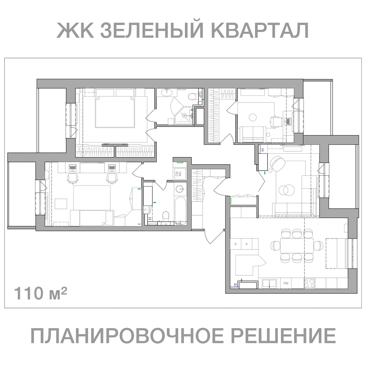 Данный объект находится в Санкт-Петербурге. Главная задача - удобно совместить две квартиры в одну (студию и 3-комнатную квартиры). Прихожая сделана за счет общего коридора дома. Объединены 3 комнаты и коридор в пользу кухни-гостиной. Одна комната поделена на две: гардеробная и кабинет. Отдельная мастер-спальня со своей ванной комнатой. Детская комната с двухъярусной кроватью, которую в дальнейшем можно заменить на отдельностоящие кровати. Вторая ванная комната находится рядом с детской, что очень удобно. Плюс около санузла есть отдельный постирочный шкаф.