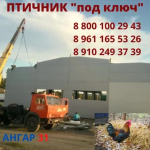 Строительство птицекомплекса под ключ — это комплексная услуга, которая включает проектирование, возведение зданий, монтаж оборудования, пуско-наладочные работы и сдачу объекта в эксплуатацию. Компания Ангар31 специализируется на строительстве быстровозводимых зданий, в том числе сельскохозяйственных объектов, таких как птицекомплексы. Если вы планируете строительство птицекомплекса в Липецкой области, обратитесь в компанию Ангар31 для получения подробной консультации и расчета стоимости проекта.