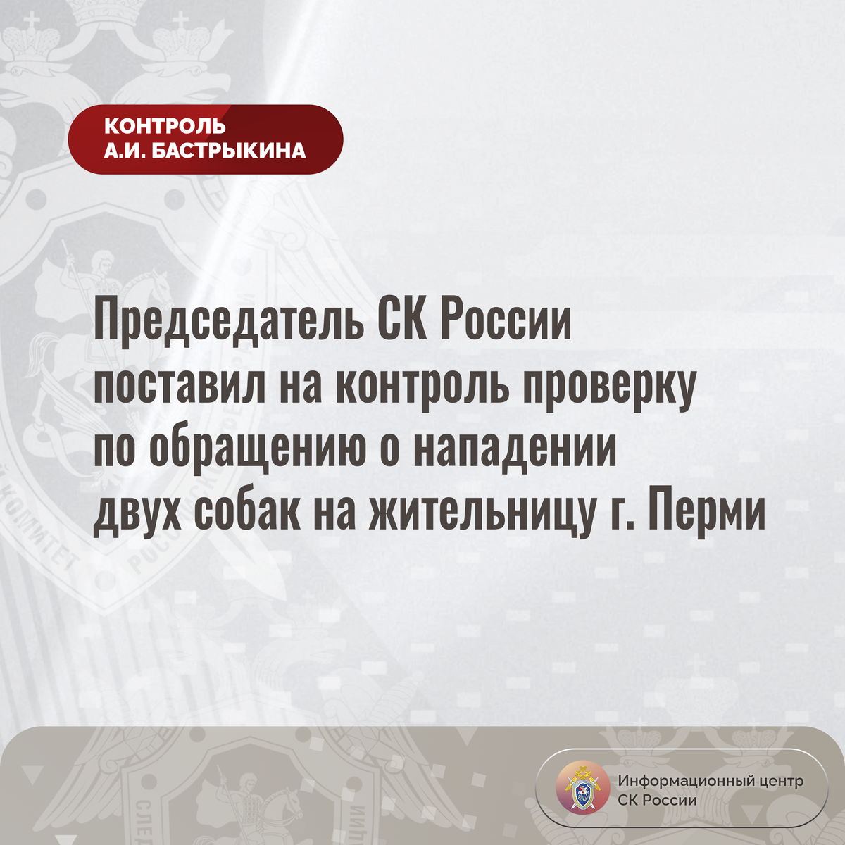 Председатель СК России поставил на контроль проверку по обращению о нападении двух собак на жительницу г. Перми