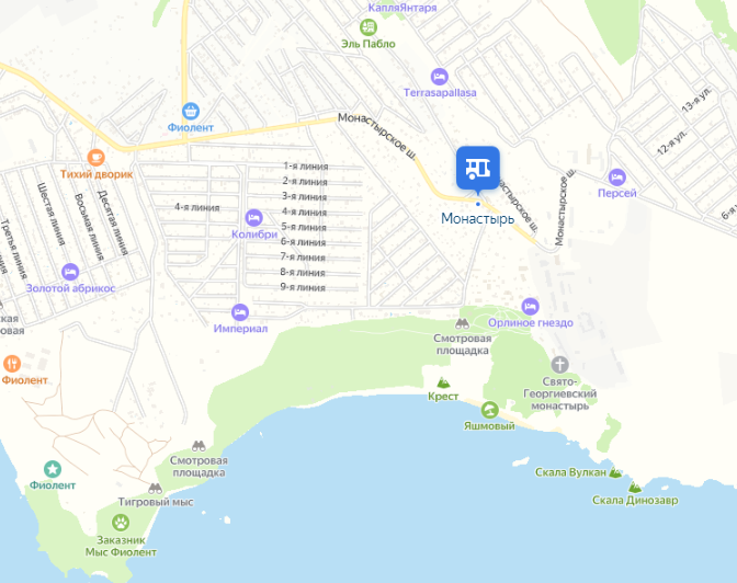 В этой статье побываем в парке Свято-Георгиевского монастыря, посмотрим на закат и море. А в конце статьи будут котики. Ну что, пойдём прогуляемся? Не знаю почему, но пришла мне идея поснимать зимний закат на Фиоленте. Уточно, что Фиолент — мыс в Балаклавском районе Севастополя. Жители Севастополя называют Фиолентом не только сам мыс, но и живописный участок побережья длиной около 10 километров. Летом я показала практически все пляжи и смотровые Фиолента, было много статей с красивыми фотографиями. Напомню Доехать сюда можно автобусами № 3, 24, 35, 79. Выходим на остановке "Монастырь". От остановки нужно совсем немного пройти вперёд. Путь нам по-прежнему указывает вот этот знак: В прошлой статье знак стоял ровно, а тут ему поплохело. Подробно путь до парка не буду показывать. Он был в прошлой статье. Я спешила, т.к. понимала, что уже довольно темно и просто могу не успеть поснимать закат. Поворачиваем направо, как нам показывает указатель, и идём прямо по дороге: А вот и ворота