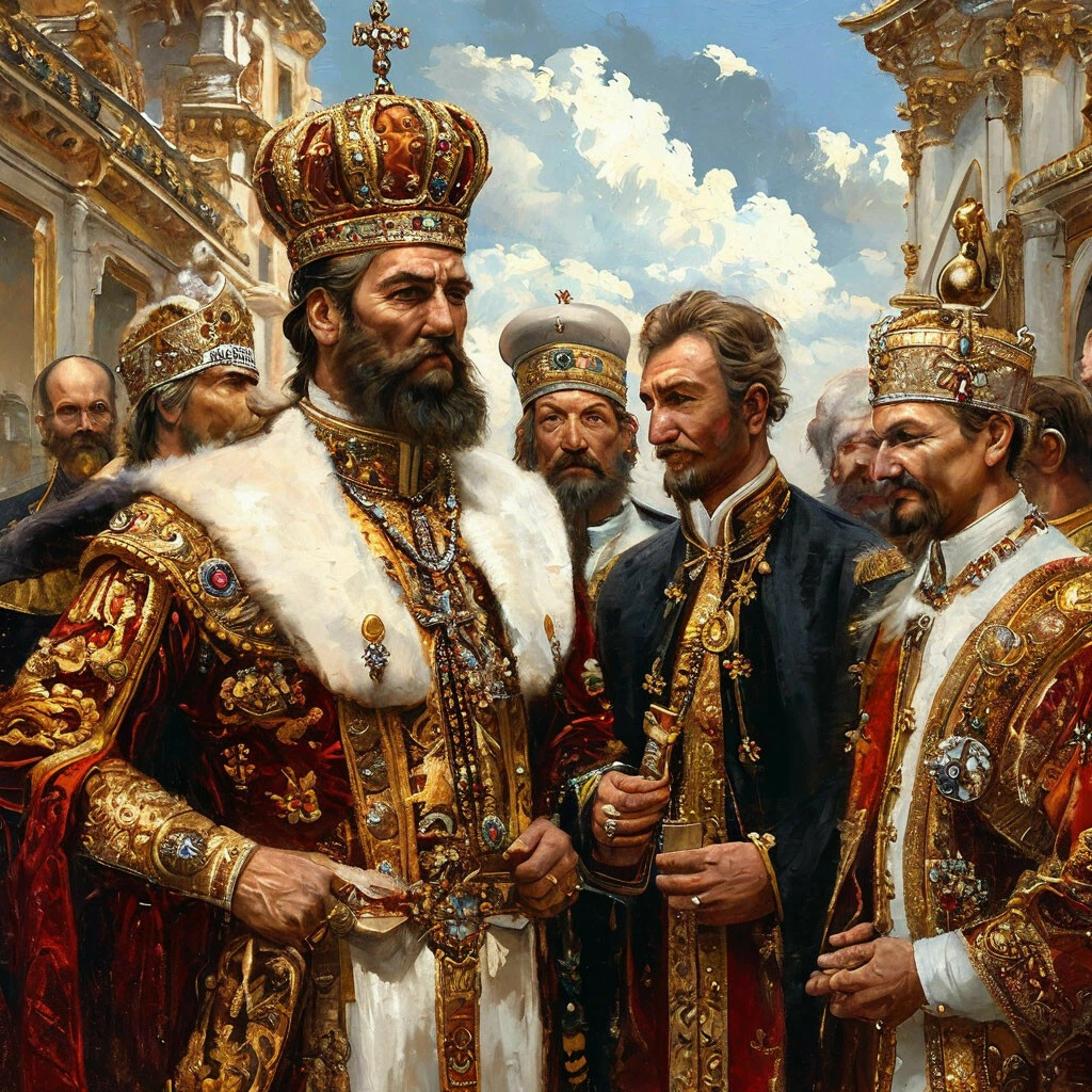 В титуле перечислена половина тогдашнего мира, кроме Ближнего востока, Африки и других южных земель. Это была территория Оттоманской Империи со столицей в Константинополе (Второй Рим).
