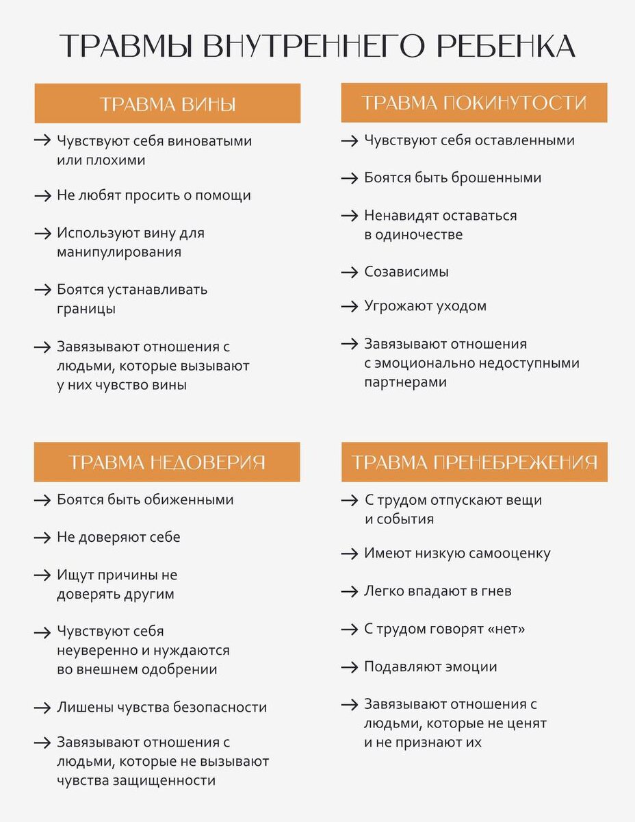 Когда мы говорим о «внутреннем ребенке», в первую очередь на ум приходят две его ипостаси. С одной стороны, это спонтанная, игривая и творческая часть нашего «Я», которая радуется жизни и чувствует мир в ярких красках. С другой стороны, это уязвимая и зависимая часть, нуждающаяся в заботе и поддержке ⬇️ Но что, если внутри нас живет другой «внутренний ребенок»? 🤔 ➖Примитивный и неконтролируемый; ➖Вечно голодный и жадный; ➖Жестокий и завистливый; ➖Всемогущий, некритичный ни к себе, ни к другим. 👉Британский психоаналитик Роберт Гроссмарк в своих работах описывает такие части нашего «Я» как неопознанные, брошенные и травмированные. Эти аспекты застряли в прошлом, замороженные в своем развитии, и их опыт невозможно выразить словами. Они могут внушать ужас своей силой и интенсивностью, разрушительными фантазиями и яростью, накопившейся от плохого обращения и отвержения. 💬 С таким внутренним ребенком сложно договориться. Он может истощать, злить и даже полностью захватывать власть над наш