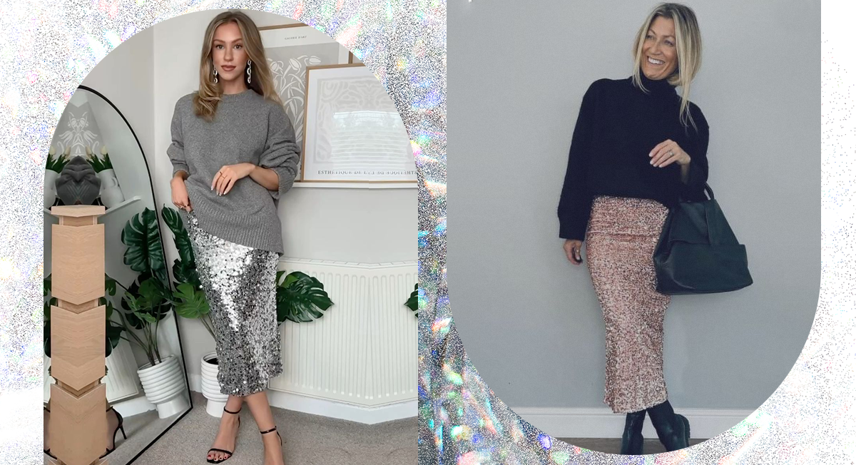 1. Сочетай трикотаж и юбки с пайетками