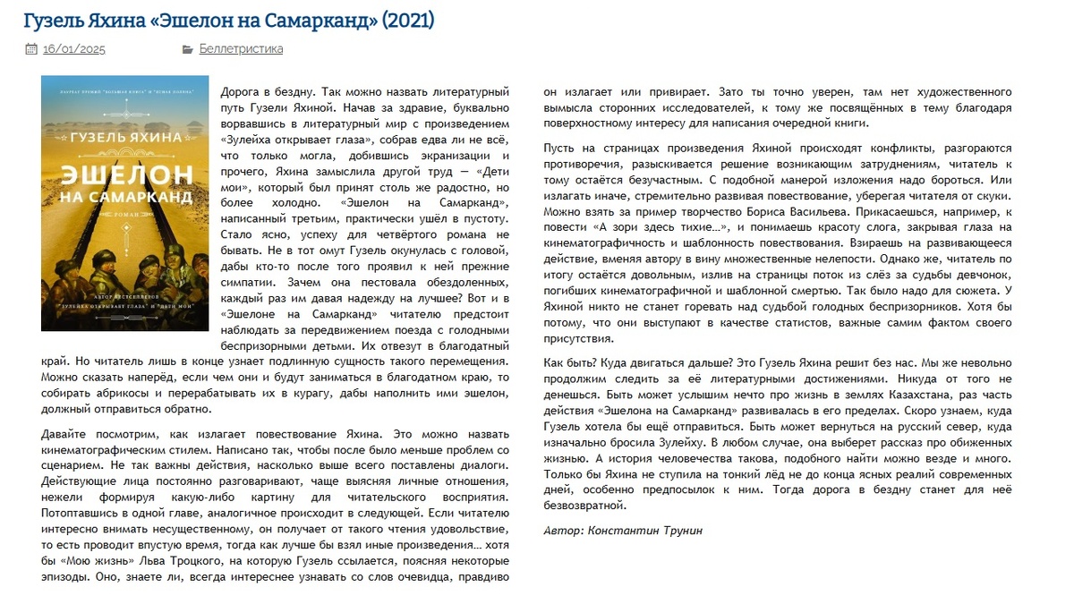 Гузель Яхина "Эшелон на Самарканд" (2021) | Критика