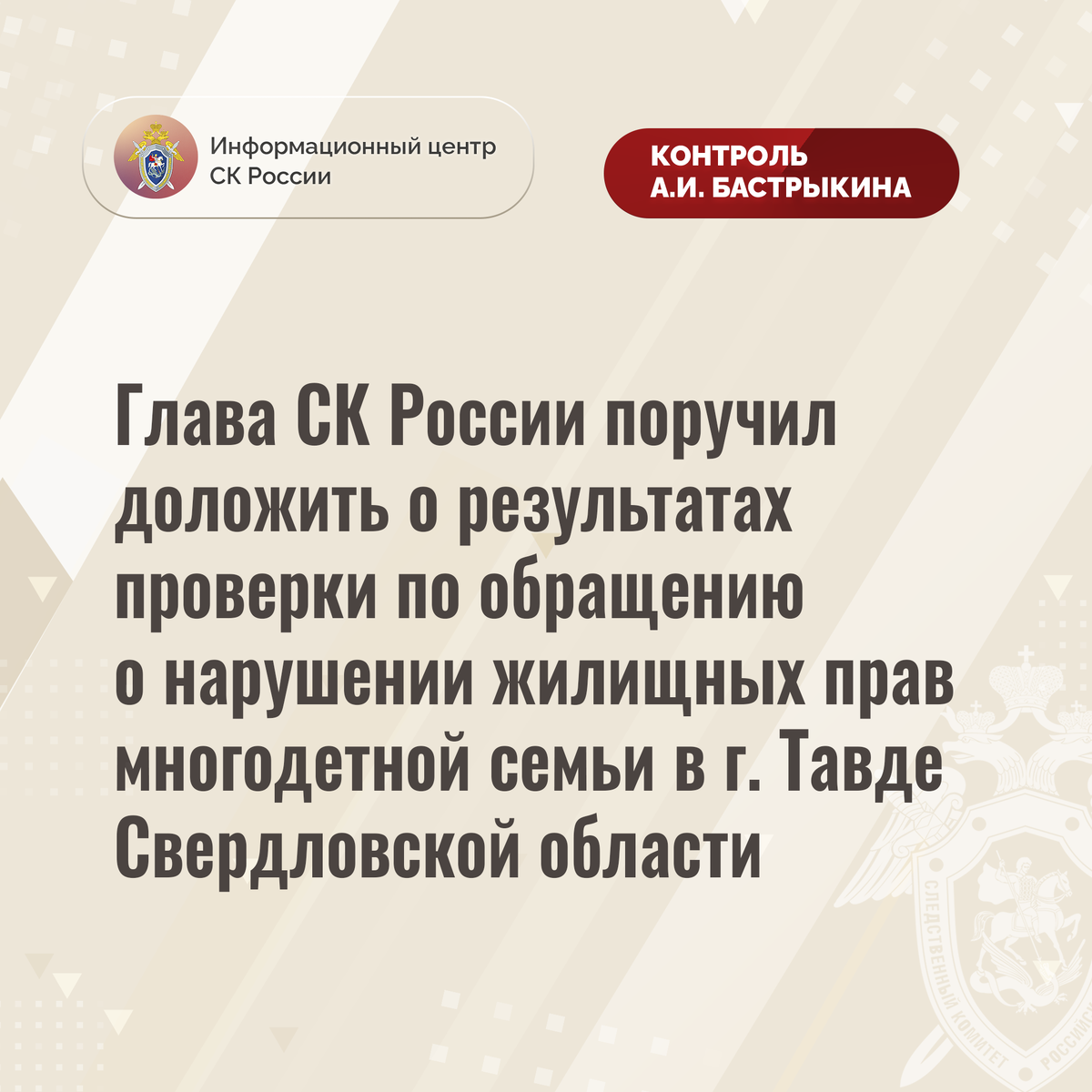 #СледственныйКомитет #СКРоссии #СКР #ИЦСКР #ИнформационныйЦентр #АлександрБастрыкин #ПредседательСКР #КонтрольПредседателяСКР #КомментарийКонтроль #СвердловскаяОбласть