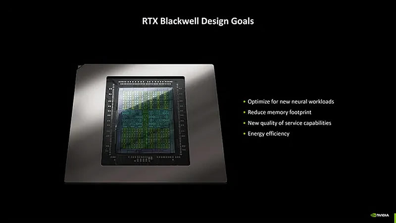 На CES 2025 Nvidia анонсировала архитектуру Blackwell, которая станет основой для видеокарт GeForce RTX 50-й серии. Главные акценты — нейронные вычисления, энергоэффективность и новые технологии, включая память GDDR7 и интерфейс PCIe 5.0. На выставке CES 2025 Nvidia анонсировала новую архитектуру Blackwell, которая ляжет в основу видеокарт GeForce RTX 50-й серии. Основные новшества направлены на улучшение нейронных вычислений, повышение энергоэффективности и внедрение современных технологий, включая память GDDR7 и интерфейс PCIe 5.0 с максимальной пропускной способностью. Флагманская модель GeForce RTX 5090 получила увеличенный размер кристалла — 744 мм² против 608 мм² у RTX 4090. Это позволило внедрить дополнительные улучшения, включая более высокую вычислительную мощность. Производительность RTX 5090 в формате FP8 выросла на 27%, достигнув 1676 TFLOPS, а FP32 — до 104,8 терафлопс. Blackwell использует четвёртое поколение RT-ядер, ускоряющих трассировку лучей вдвое по сравнению с Ada