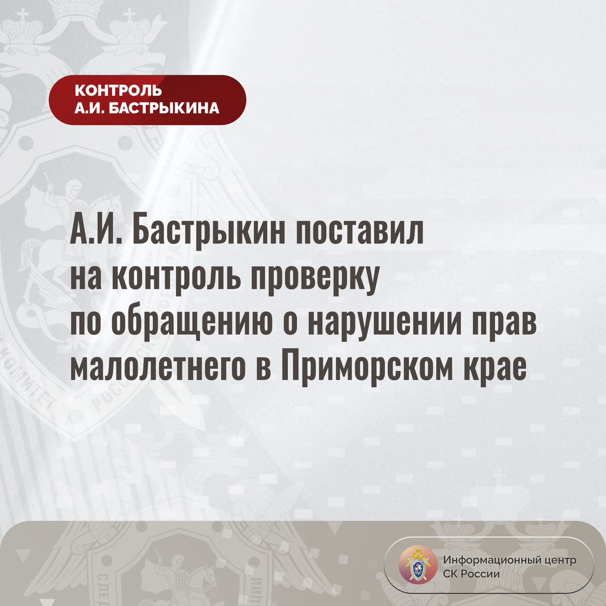 А.И. Бастрыкин поставил на контроль проверку по обращению о нарушении прав малолетнего в Приморском крае