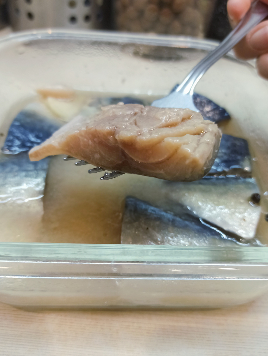 Добрый день дорогие друзья и читатели моей страницы в Дзен, меня зовут Елена и хочу поделиться с вами рецептом приготовления свежезамороженной скумбрии пряного посола. Рыба получается нежная, пряная, по вкусу очень напоминает слабосолёная сельдь. Ее хорошо кушать с картофельным пюре или положить сверху на кусочек черного хлеба. 1. Тушку скумбрии необходимо разделать на порционные кусочки и достать все косточки, но можно и просто нарезать на куски. Так как рыба была замороженная, я ей дала оттаять в холодильнике. 2. Готовим маринад. В кастрюлю насыпаем 2 чайные ложки соли, 1 чайную ложку сахара, два лавровых листа, 1/2 ч.л зёрен кориандра, 1/2 ч.л черного перца горошком. Наливает 200 мл воды, 1 ст.ложку растительного масла, 1 ст.ложку 6% уксуса и ставим на огонь, необходимо проварить 5-7 минут после закипания, чтобы специи раскрылись и все ингредиенты смешались. Когда маринад приготовится, дайте ему полностью остыть до комнатной температуры. Заливать рыбу горячим раствором к