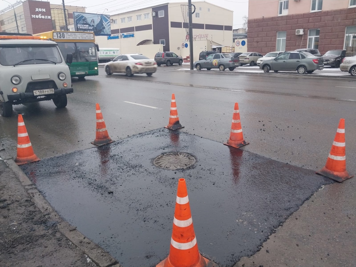 В настоящее время в Пензе и Заречном, несмотря на зимние условия, продолжается ямочный ремонт дорог.