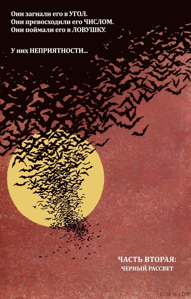 Бэтмен падает с обрушенной лестницы. Огонь зажигает термит в его поясе, и он откидывает его прочь, благо у него всё ещё имеется пара устройств в плаще, перчатках и сапогах. Тем временем живущая неподалёку Селина Кайл просыпается и видит Холли у окна, наблюдающей за взрывом. Полицейский спецназ готовится к штурму здания, частично обрушенного после взрыва. Они находят люк от подвала с открытым замком, в котором, предположительно, скрылся Бэтмен. Однако это оказывается ловушкой, Бэтмен выскакивает из дымохода и закрывает часть спецназа, а часть обезвреживает на месте. Оказалось также, что кроме Бэтмена уцелел лишь сиамский кот. Спрятавшись под остатками лестницы вместе с котом, он перевязывает свои раны, планируя побег. Когда спецназ врывается, кот выскакивает из тени, отвлекая на себя часть внимания. Тем временем Бэтмен включает у себя в сапоге ультразвуковое устройство, зовущее всех летучих мышей из его пещеры к зданию. Однако ему нужно выиграть ещё времени. Попытавшись вырубить пару сп