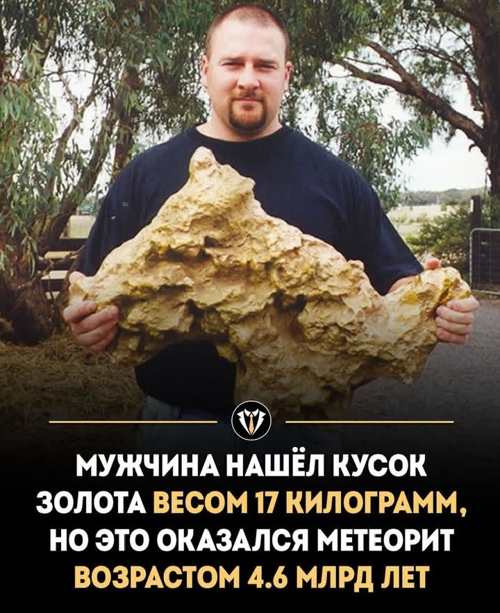 "Золото из космоса: Мужчина нашел 17-килограммовый самородок, оказавшийся метеоритом возрастом 4,6 млрд лет"