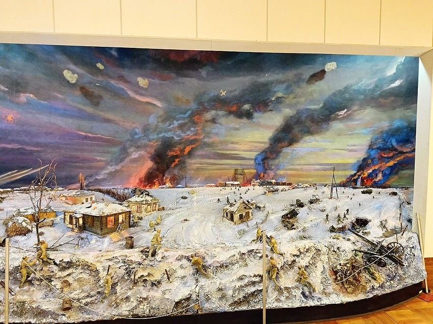 В главном зале музея представлена диорама, которая демонстрирует процесс освобождения станции. Конструкцию изготовили в 1989 году в г. Ростов-на-Дону и привозили по частям в музей. Диорама наглядно и детально отображает события того времени. Штурм ледяного вала, погибшие бойцы, разбитые машины… Три хаты на краю села, в которых держали оборону 13 Героев. Панорама позволяет посетителям музея глубже окунуться в те далёкие события. На стенах размещены изображения 13 гвардейцев, а также их документы, подтверждающие получение наград.