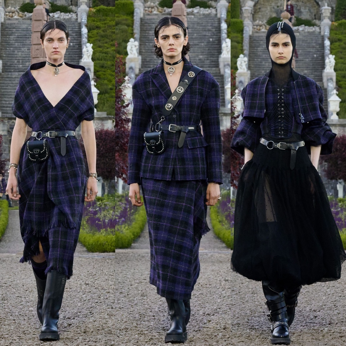 Christian Dior Resort 2025 получилась действительно роскошной, почти идеальной, услаждающей взоры фанатов этого величайшего МД и не только. Не могу сказать что последние коллекции так сильно врезались в память, поэтому данная работа - чистый нектар. Когда смотришь на все эти корсеты, тартан, тяжелые сапоги, даже кажется, что эта коллекция вышла из под руки Сары Бёртон, но нет. Как оказалось, панк и романтика - это знакомый язык моды и для Марии Грации Кьюри. Коллекция носит название «Mad Dioriosa», которое видимо вдохновлено названием последнего фильма о безумном Максе, и представляет собой исторический экскурс по Шотландии. «Эта страна очень кинематографична и словно живет в нашем воображении», — сказала она. - Это поэтичное, романтичное и сказочное место с замками. Подумайте, как культура отдыха повлияла на дизайнеров, таких как Вивьен Вествуд и Александр Маккуин. Я не удивлена, что мистер Диор был очарован этой страной и ее текстилем». И все-таки отсылка к Alexander McQuee