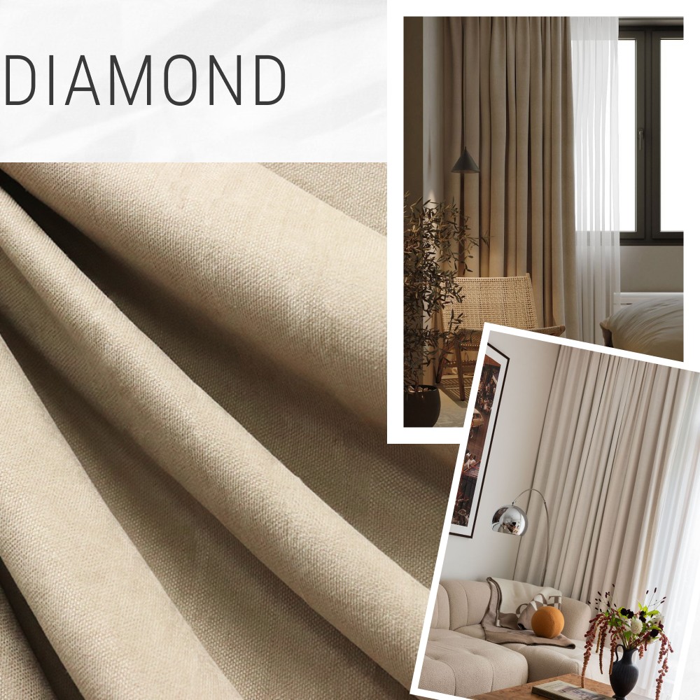 Диамонд, также известный как канвас, представляет собой плотную ткань с гладкой поверхностью. Она отличается высокой прочностью и долговечностью, что делает её идеальным выбором для изготовления штор в классическом стиле.