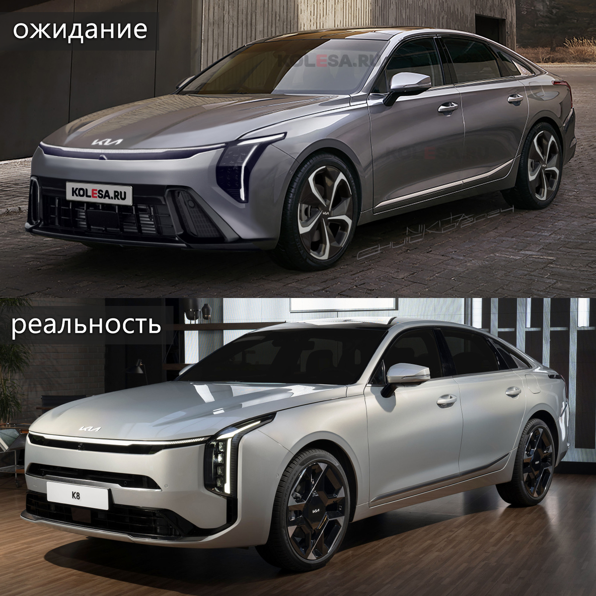 Несколькими новинками порадовала и Kia, среди них – обновлённый седан K8. Он дебютировал в августе, и за несколько дней до премьеры были опубликованы рендеры автомобиля. Здесь есть различия в дизайне передней части, фонарей и заднего бампера.
