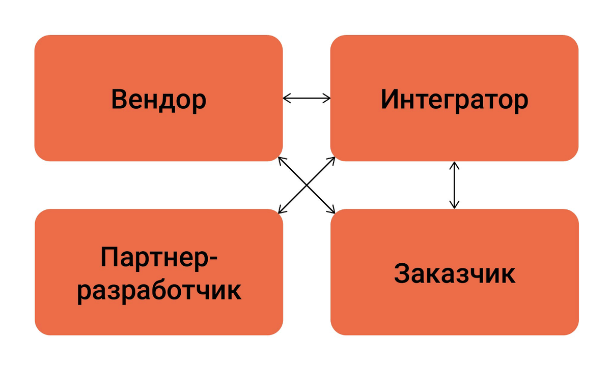 Таким образом, вендор и клиент оказались в режиме взаимного ожидания. Пока у большинства вендоров недостаточно развита партнерская сеть, а продуктовая экспертиза сосредоточена внутри. Клиенты, в свою очередь, обращаются напрямую к вендорам за внедрением, из-за чего разработчики ПО теряют фокус развития продукта и технологий.