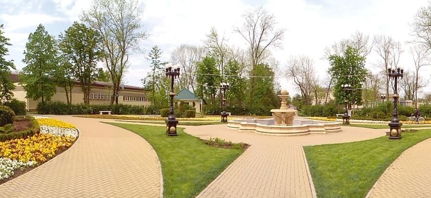 Запоминающийся живописный парк включает в себя настоящие произведения искусства в виде ажурных ротонд, фонтана в стиле классицизма, оригинальные лавочки с вензелями в духе старины, просторные прогулочные аллеи, роскошные клумбы и детские площадки. Отличное место для отдыха на природе и получения эстетического удовольствия.