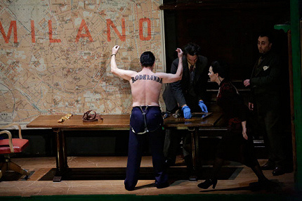 Роль Большого во всей этой истории минимальна и ограничивается участием оркестра: прокат спектакля (всего три серии показов) похож на гастроли Английской национальной оперы, копродукцией с которой постановка и является. Спектакль Ричарда Джонса – мастеровитая актуализация, помещающая условное королевство лангобардов в эпоху Муссолини и интерпретирующая интриги при варварском дворе через призму черного юмора в мафиозной среде, что вряд ли согласуется со смыслами театра Генделя.