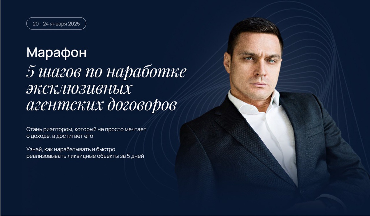 5 дней = ваш супер рост в недвижимости 🔥 Чтобы кратно вырасти в доходах, важно не только уметь нарабатывать базу ликвидных объектов, но и быстро ее реализовывать. Я разработал схему, которая работает безупречно Мои объекты разлетались, как горячие пирожки, а портфель контрактов постоянно пополнялся новыми 👉 Этой схемой я поделюсь с вами на марафоне «5 шагов по наработке эксклюзивных агентских договоров» За 5 дней вы сделаете то, что другие делают за месяцы: - Узнаете, как быстро наработать базу объектов - Научитесь молниеносно реализовывать их - Прокачаете навыки, которые подходят для любого уровня — новичков и опытных профессионалов - Обменяетесь опытом и зарядитесь мощной энергией 📅 Марафон пройдет 20-24 января 💰 Цена символична — всего 2025₽ Не упустите возможность! Набор уже открыт. Чтобы присоединиться, переходите по ссылке: https://rieltor1pro.ru/maraphon?utm_source=dzen