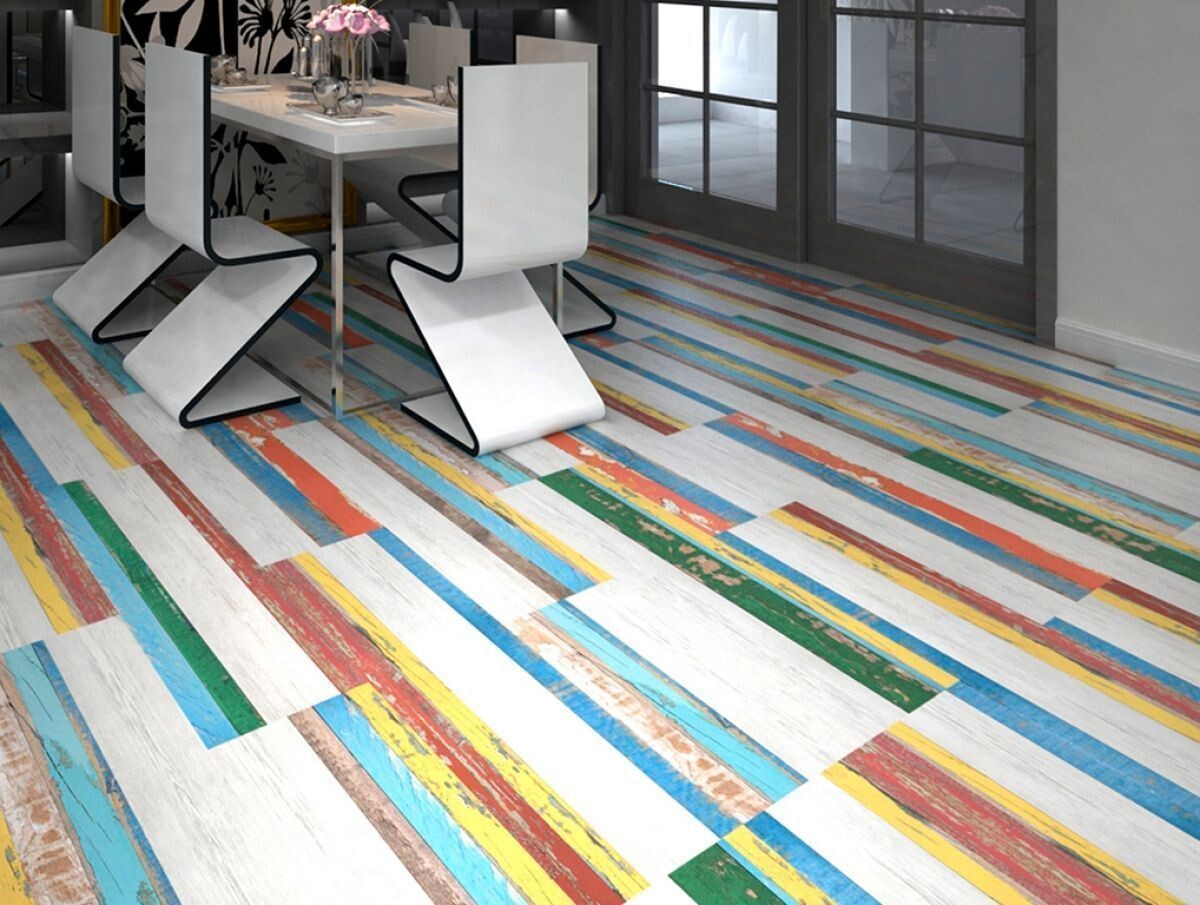 Добиться уникального и стильного дизайна можно с помощью абстрактных элементов. Извилистые линии, необычные полосы или хаотичные разводы – это эффектное дополнение к любому интерьеру. Такие дизайнерские решения подойдут для поклонников смелых и креативных интерьеров. Часто абстракция становится частью авторских дизайн-проектов. Это позволяет создавать интерьеры - настоящие произведения искусства, в которых очень оригинально комбинируются различные формы и цвета. Создать яркий и стильный абстрактный интерьер можно, используя специальные приемы оформления. Абстрактные сюжеты можно классифицировать по дизайнам, среди которых наиболее популярными можно считать: Пол с прямыми или волнистыми линиями уже не первый сезон занимает лидирующие позиции на рынке напольных покрытий. Керамогранит, ковролин и кварц-винил с подобным узором легко вписываются в большинство интерьеров, выглядят неповторимо и эффектно. Часто такое покрытие выбирают как простой и практичный вариант, позволяющий легко адапт