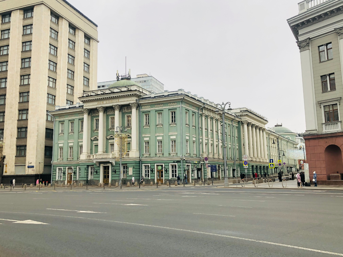 В результате здание и сегодня занимает всю ширину квартала по Большой Дмитровке от Охотного Ряда до Георгиевского переулка: