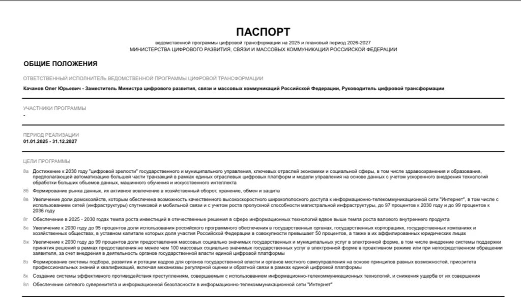 Эта информация следует из обновленного паспорта ведомственной программы цифровой трансформации на 2025-й и плановый период 2026-2027 годов.