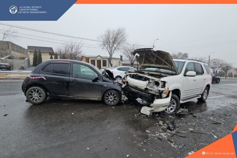 Գերատեսչությունը տեղեկացնում է, որ բախվել են Nissan (վարորդ՝ Ա. Հ.) և Toyota (վարորդ՝ Ա. Բ., ծնված 1962 թ.) մակնիշների ավտոմեքենաները: