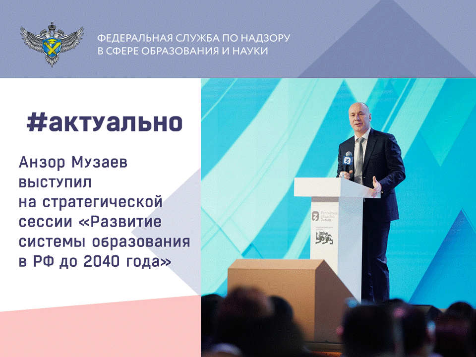Анзор Музаев сообщил о совместной работе Рособрнадзора и Минпросвещения России над Стратегией развития образования до 2036 года с перспективой до 2040 года. Он подчеркнул важность создания системы, способной объективно оценивать качество реализации документа.